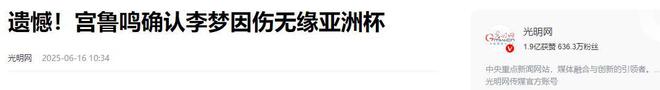 光明網(wǎng)2025-06-16——遺憾!宮魯鳴確認(rèn)李夢因傷無緣亞洲杯